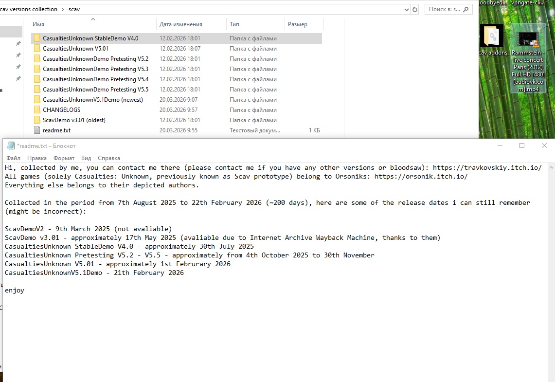 So here it is - collection of every version of casualties: unknown i could get my hands on, v3.01 - v5.1 included, most of the other info is depicted on the screenshot, i dont want to overload this comment. If there is any trouble downloading it or if you want some proof that this is not a virus - message me directly: my discord is in my profile.